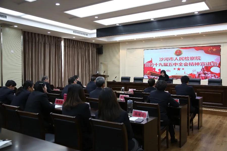 近日,沙河市检察院组织召开党的十九届五中全会精神宣讲会,院党组书记、检察长赵丽杰结合检察工作实际,对党的十九届五中全会精神进行了深入浅出的解读。全体干警参加了会议。